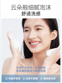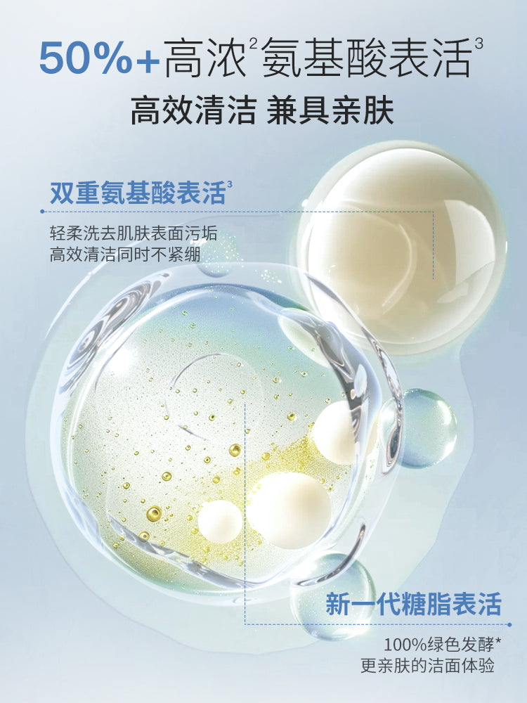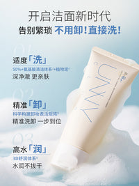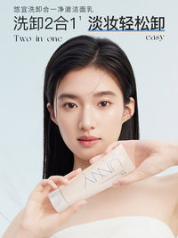 2 in 1 Cleansing & Makeup Remover Cleanser combines cleansing and light makeup removal in one step. Formulated with over 50% amino acid surfactants and 100% natural plant mud, it deeply cleanses pores while dissolving light makeup without leaving a greasy film. Its 3D moisturizing system (featuring snow grass extract and patented ingredients) keeps skin hydrated and non-tight after washing. It creates cloud-like fine foam for a comfortable feel, plus a fresh fruity-floral scent.